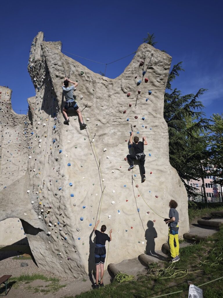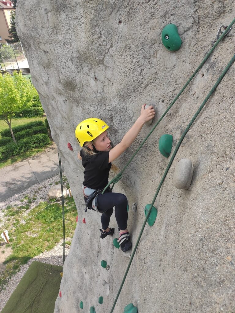 - lezení cest v položeném profilu, v kolmici, v převisu, postupně podle obtížnosti